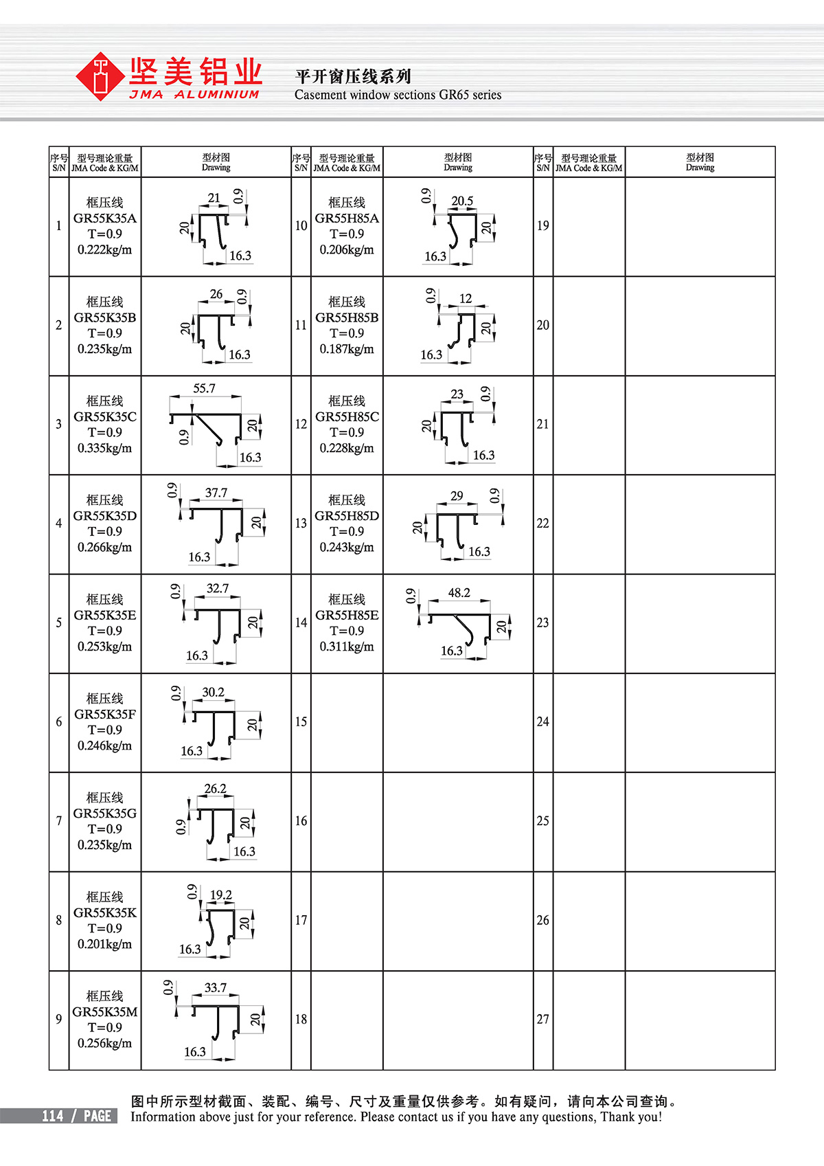 Accueil - Centre de produits - Isolation thermique - new GB standard Thermal-break - Casement window sections GR55/60/65 series
