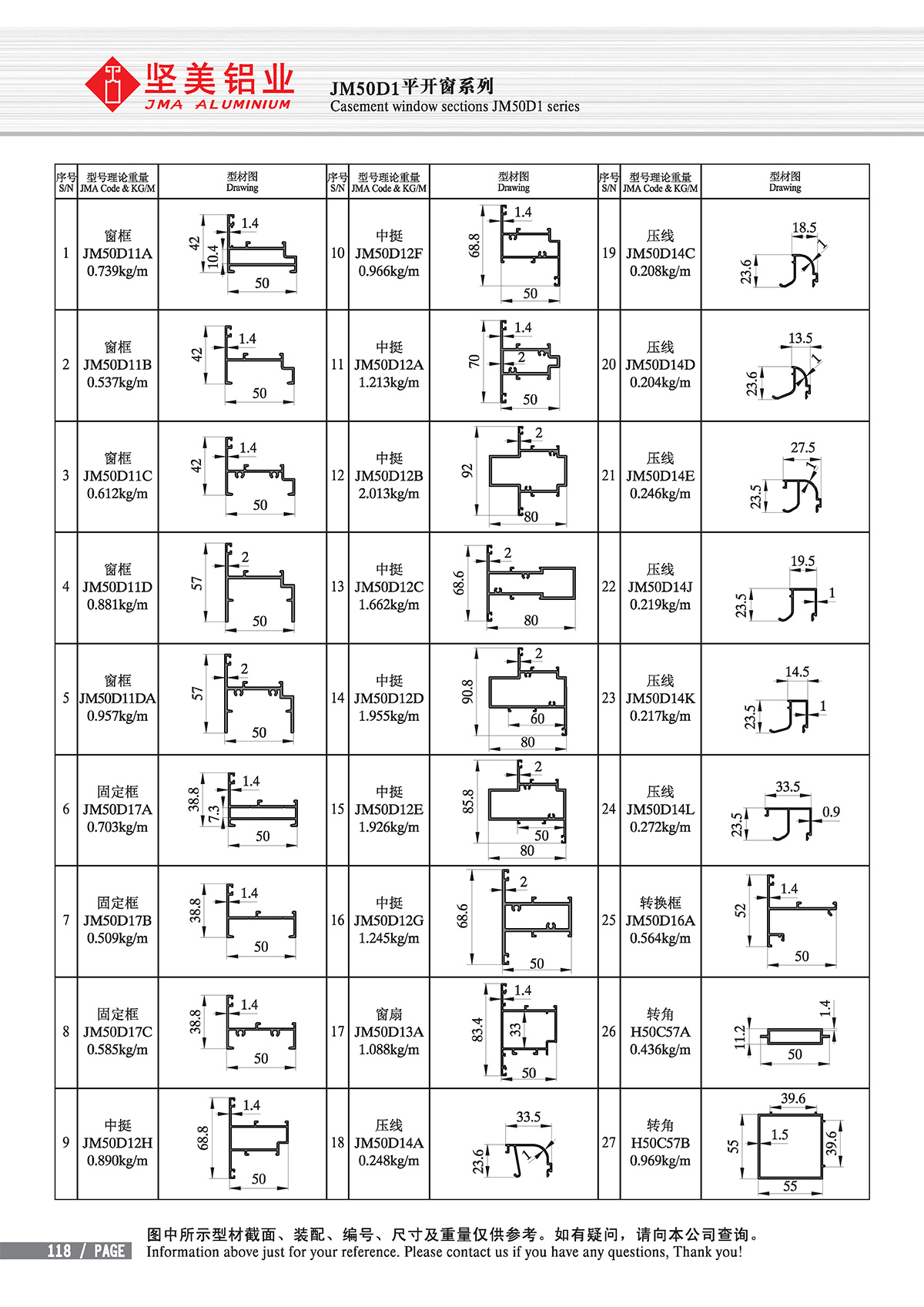 ホーム - 製品センター - 普通の建具 - 50 Casement sections - Series JM50-D1 Open-out Casement window