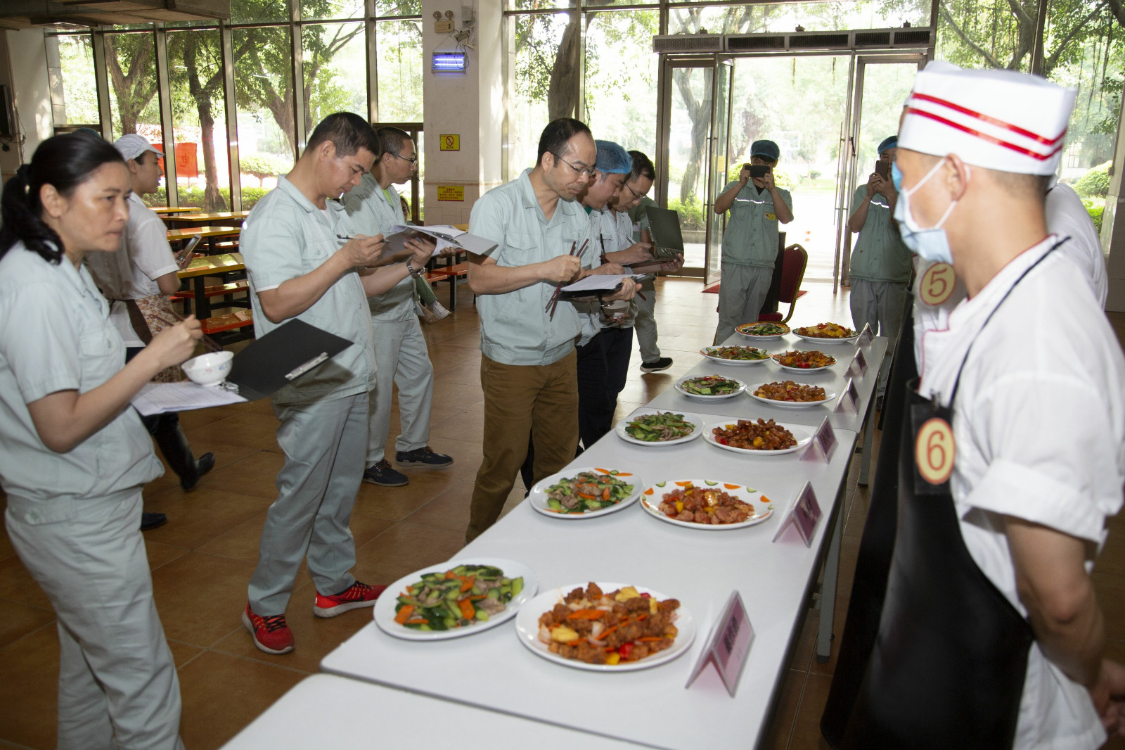 本次活動(dòng)由我司行政部主辦,旨在提高公司食堂廚師、廚工鉆研廚藝技能積極性,發(fā)掘水平高、能力強(qiáng)的烹飪?nèi)瞬牛岣呤程藐?duì)伍整體烹飪水平。此次比賽共有17名廚師及42名廚工參加,比賽分為“廚師廚藝競(jìng)賽”和“廚工技能競(jìng)賽”兩項(xiàng),并進(jìn)行初賽、決賽篩選。