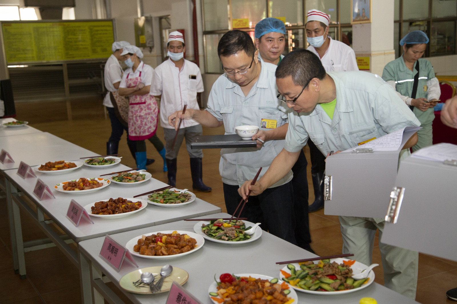 評(píng)委在認(rèn)真品鑒菜肴