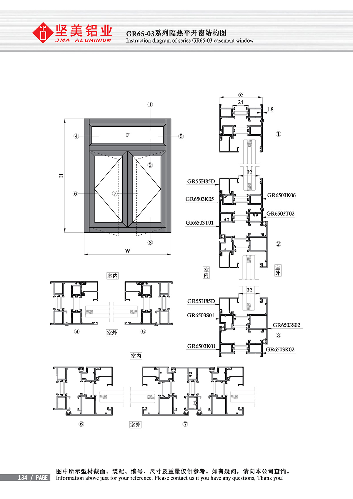 GR65系列隔熱平開門窗