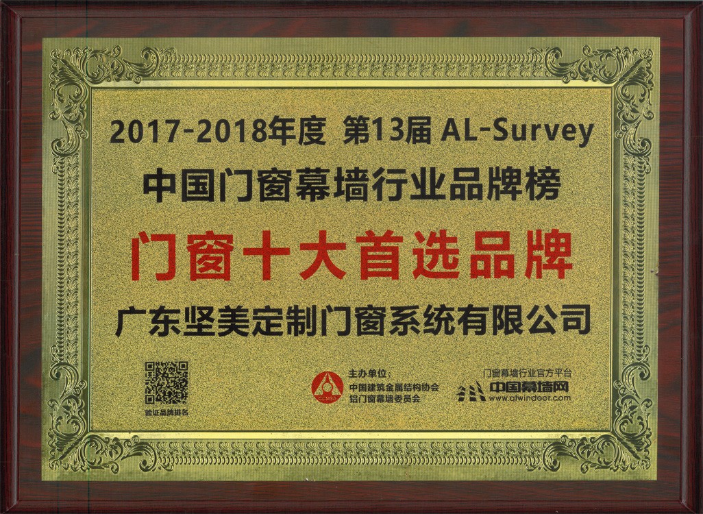2017-2018第13屆AL-Survey中國門窗幕墻行業(yè)品牌榜門窗十大首選品牌