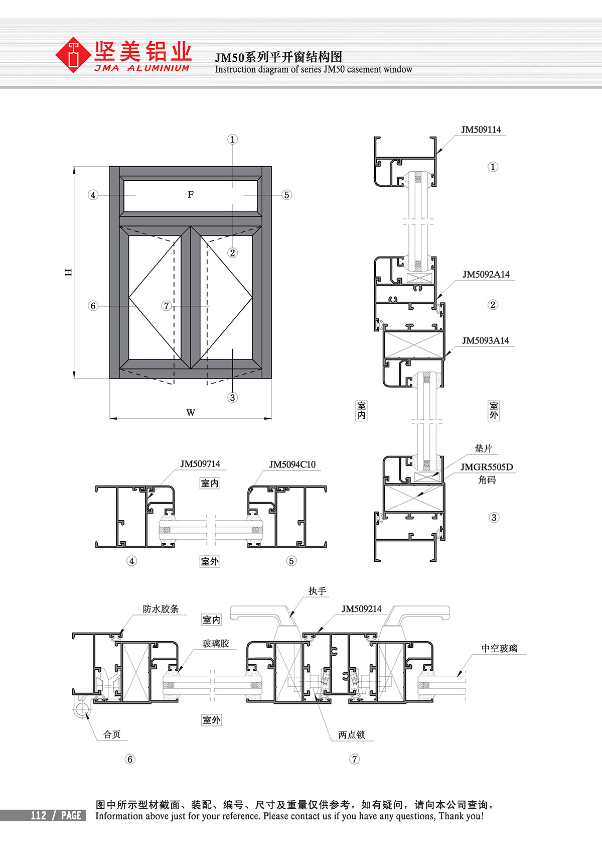 Position: Home - Product line - Ordinary doors and windows - 50 Casement sections - Series JM50 Open-out Casement window