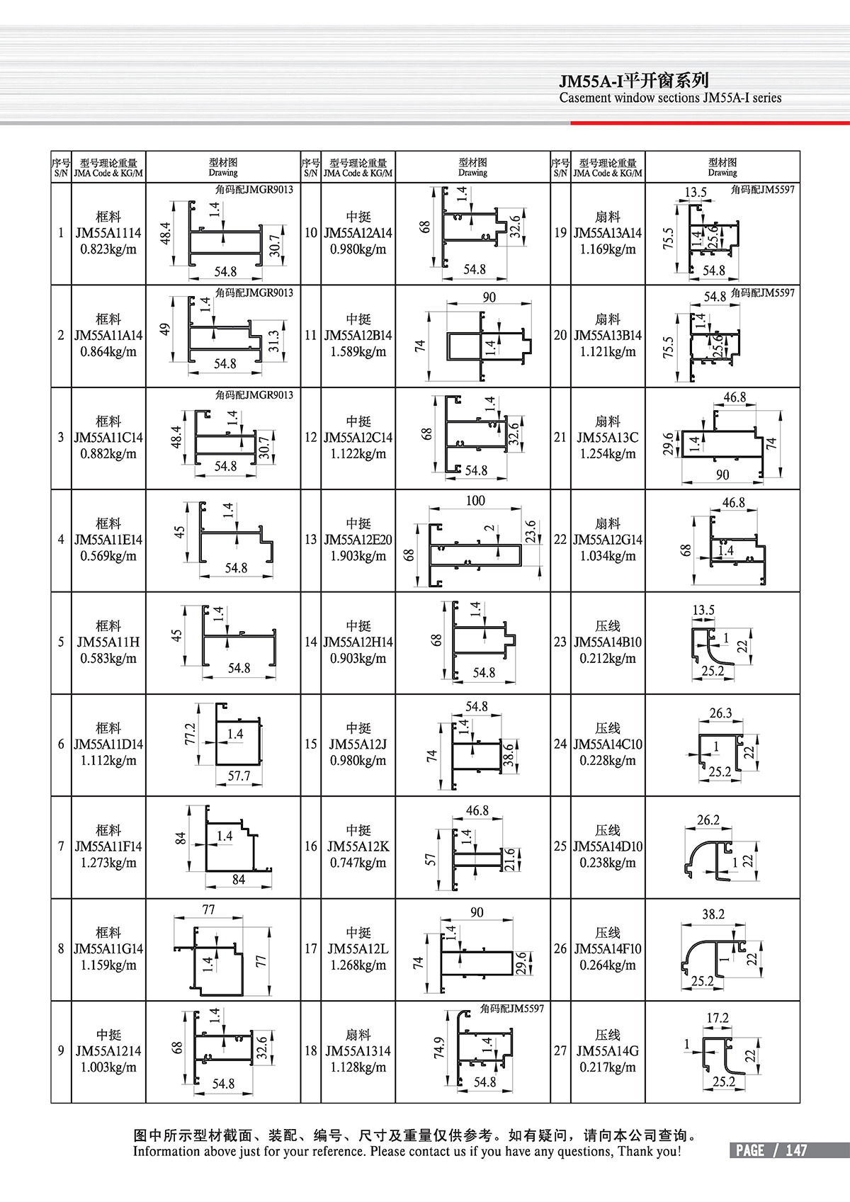 Position: Home - Product line - Ordinary doors and windows - 55 Casement sections - Series JM55A-I Open-out Casement window