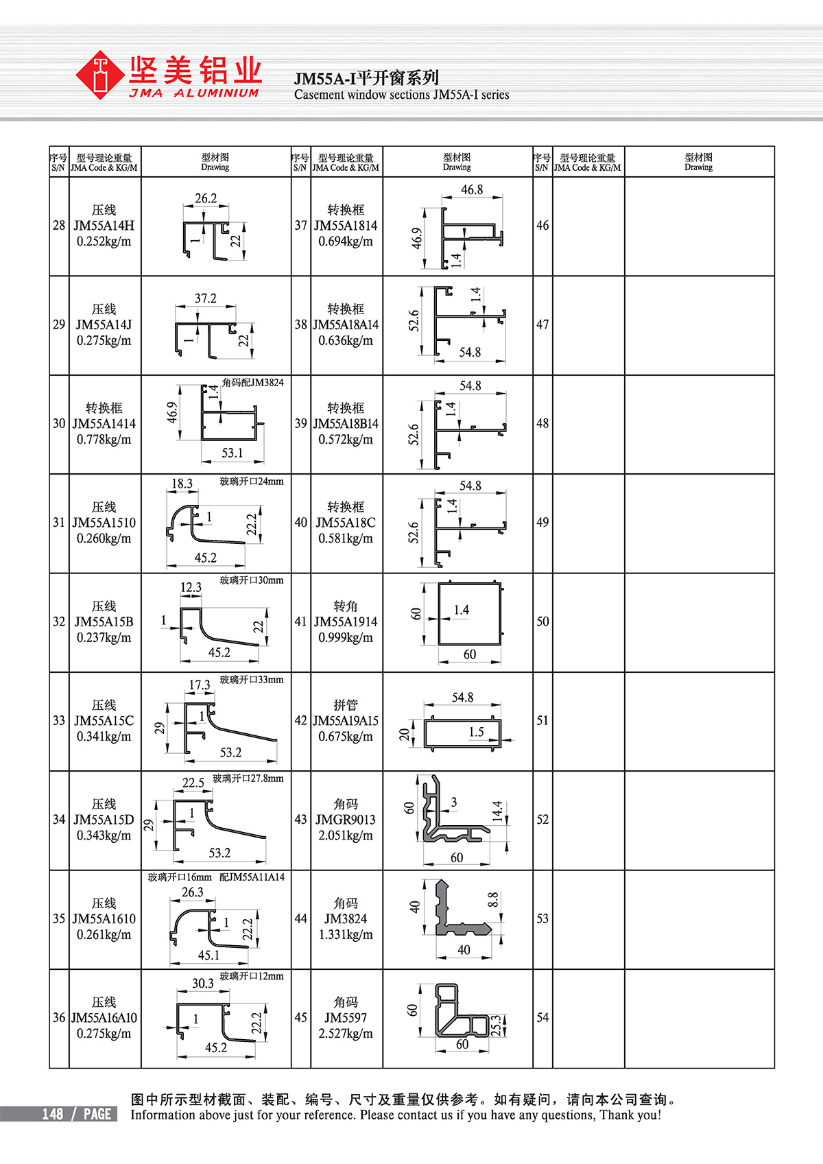 Position: Home - Product line - Ordinary doors and windows - 55 Casement sections - Series JM55A-I Open-out Casement window