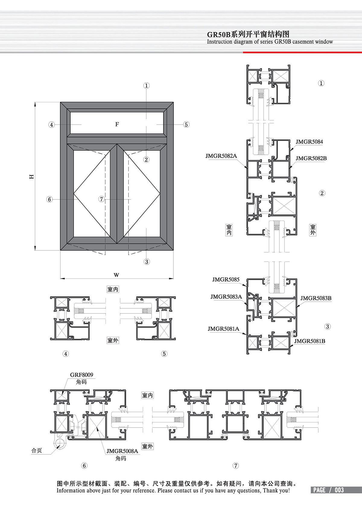 Casement window sections GR50B series