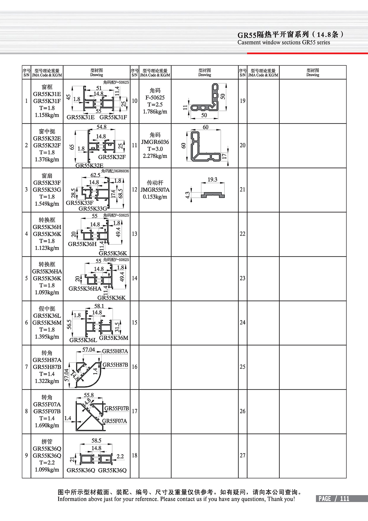 Главная - ПРОДУКЦИЯ - Теплоизоляция - new GB standard Thermal-break - Casement window sections GR55/60/65 series