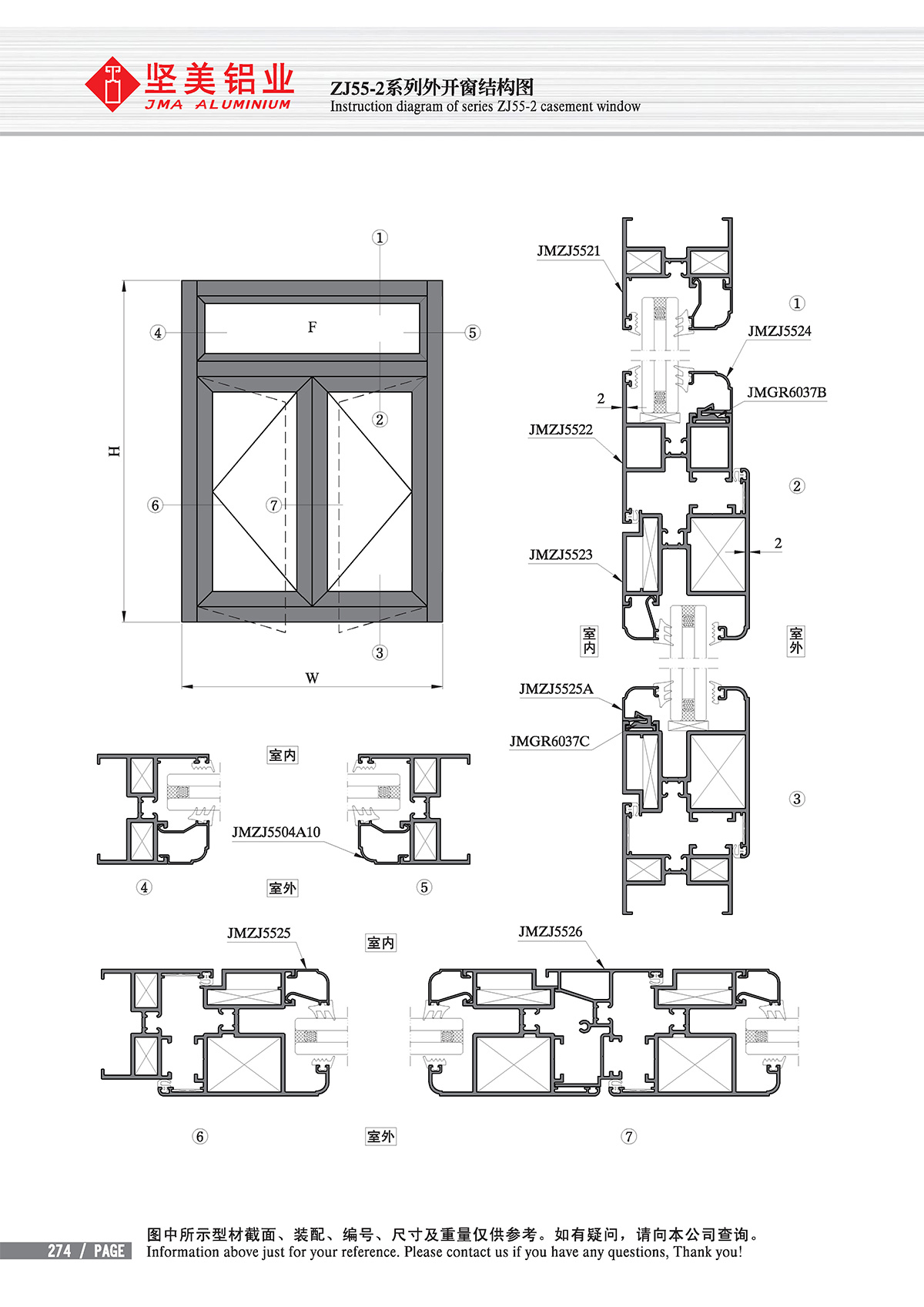 Casement window sections Z.J55 series